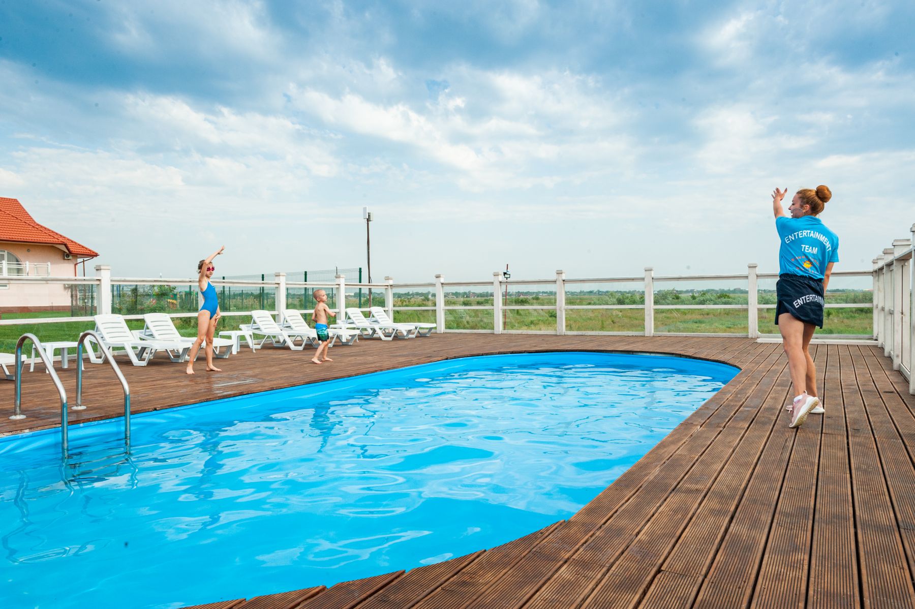 Также в стоимость номера входит: Обогреваемый бассейн, детская площадка, детская игровая комната с аниматорами, игровые приставки Сони PS4, настольный тенис, парк аттракционов, анимационные программы для детей и взрослых, вечерние шоу программы, аквааэробика в бассейне и на море, уроки танца, оздоровительные дыхательные упражнения на расцвете, и йога на закате у моря, зона барбекю, охраняемая автостоянка, шезлонги.